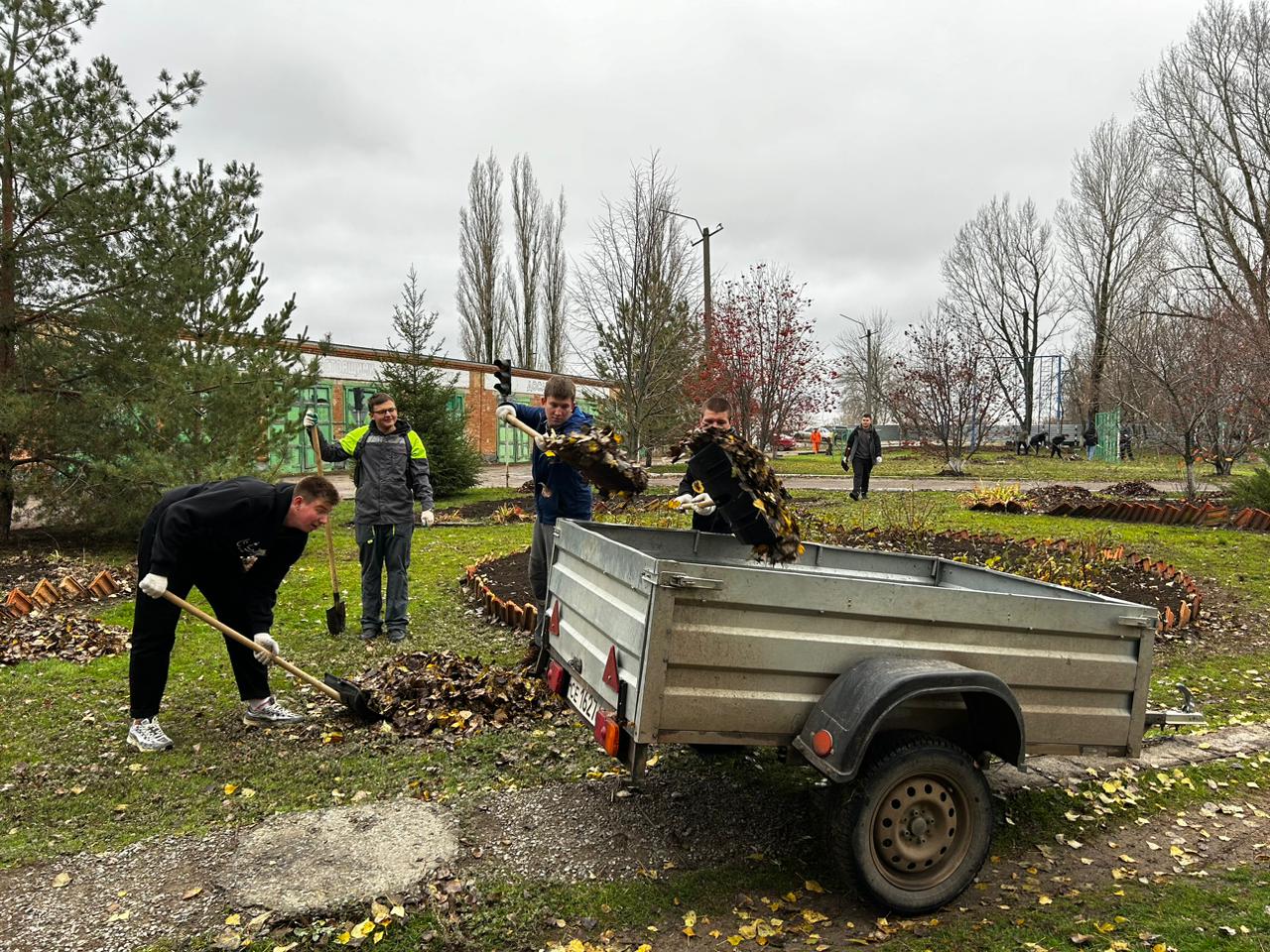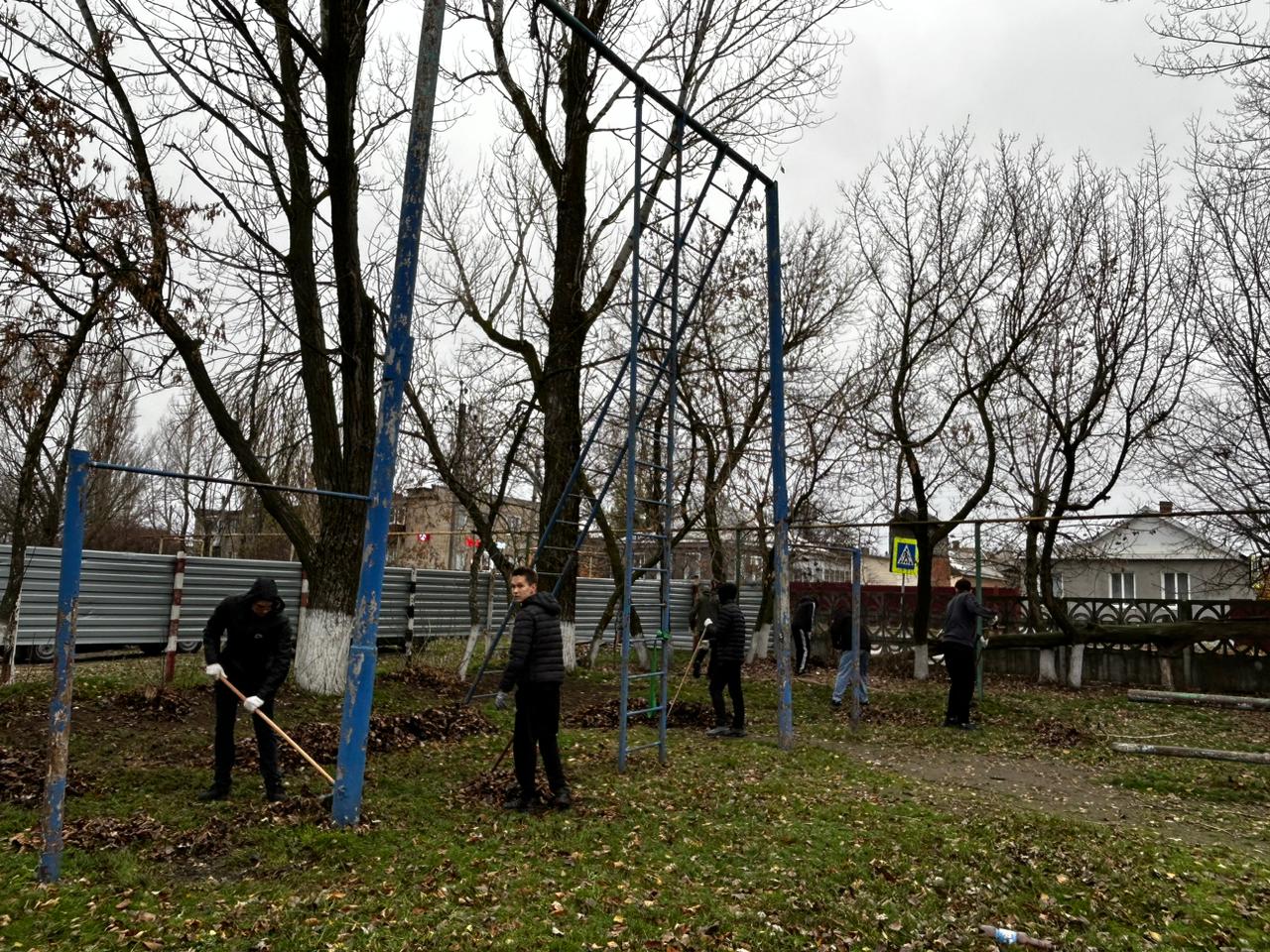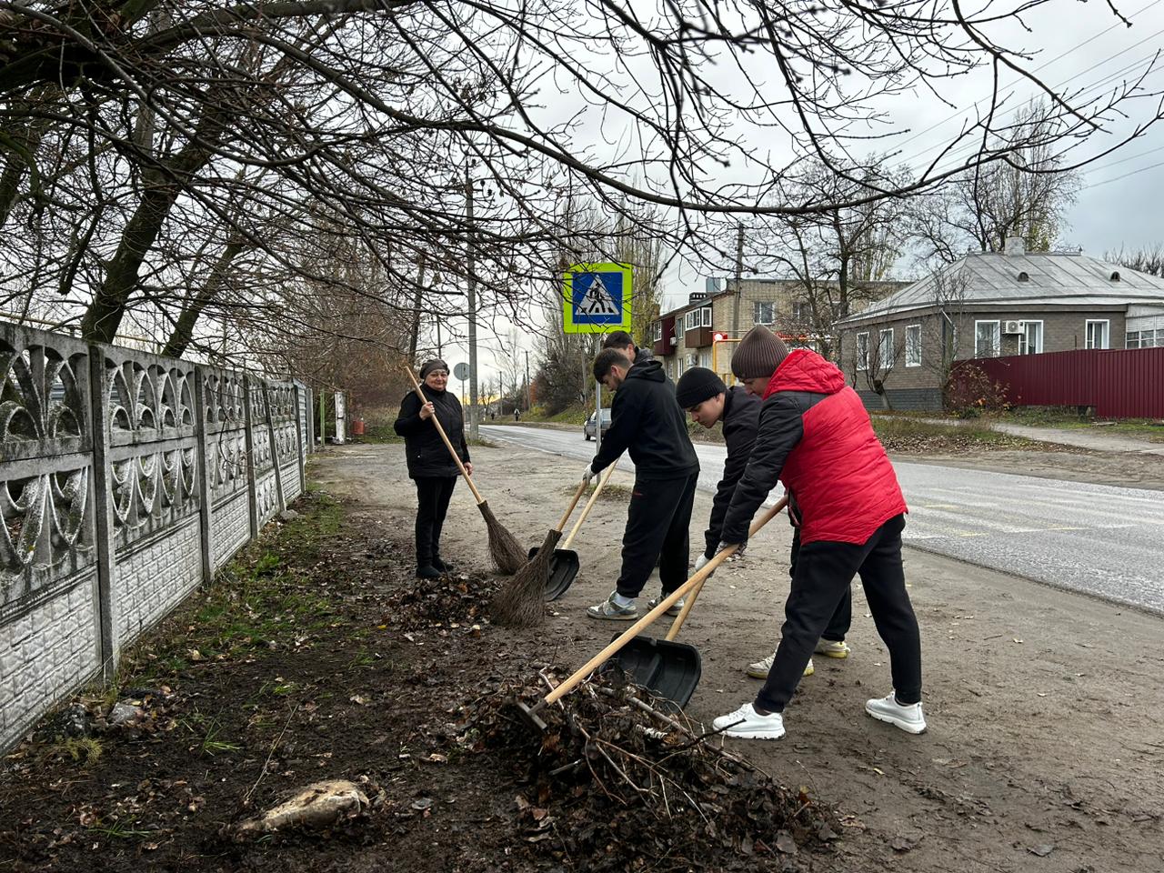 масштабную уборку территории автошколы и прилегающих участков. Убрали опавшую