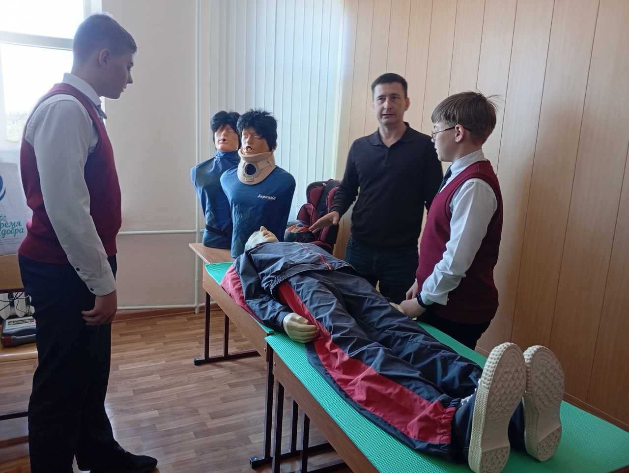 В нем приняли участие Первые МБОУ СОШ 2 (наставник Лебедева Я.А.), МБОУ СОШ 8 (наставник Горошко П. В.), МБОУ лицей 7 (наставник, советник директора по воспитанию Кутькова В.С.), МБОУ Нижне-Ольховская СОШ( наставник Власенко Е.В.) и ДСХТ (наставник, советник директора по воспитанию Семенютина О. Н.) приняли участие в уроке по Первой помощи от специалиста-инструктора Миллеровской автошколы Шаповалова В.В., который, умело сочетая теоретические и практические знания, в доступной форме объяснил и научил алгоритмам и правилам оказания первой медицинской помощи.
